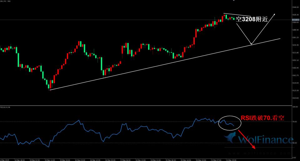 周三(5月21日)黄金RSI指标离开超买区域,市场短线争取做空逻辑,市场下跌概率很高,亚欧时段,国际金价延续周二的强势上涨行情,现货黄金价格盘中一度触及3320美元/盎司关键点位,为5月9日以来新高。这场黄金盛宴的背后,是美元指数暴跌至99.42的两周低位,以及美国财政政策不确定性引发的市场恐慌情绪蔓延。在全球资本市场的惊涛骇浪中,黄金再度展现出"乱世避风港"的独特魅力。