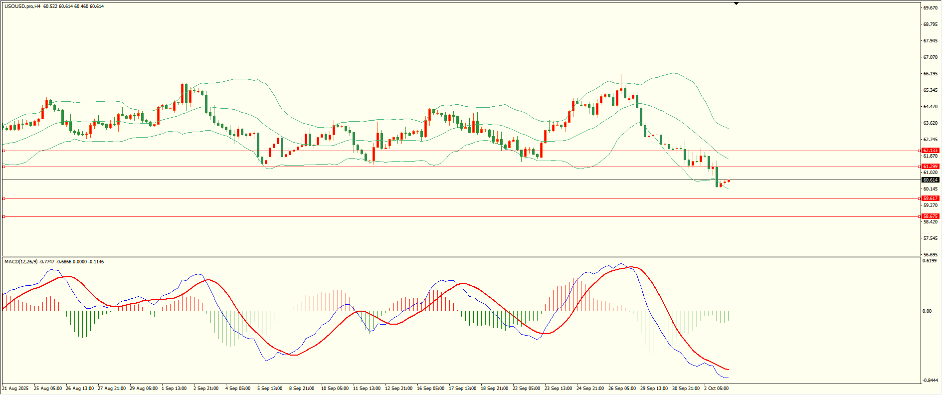 原油昨日小幅反弹后延续走低,盘中在利空因素打压下扩大跌幅,日线报收中阴线,上方阻力保持,短线略有偏空,从4H来看,布林中轨偏下,MACD零轴下方运行,日内上方首要阻力61.20-30,第二阻力62.10,下方支撑59.60,58.60-70,保持在第一阻力下方短线有望测试第一支撑。