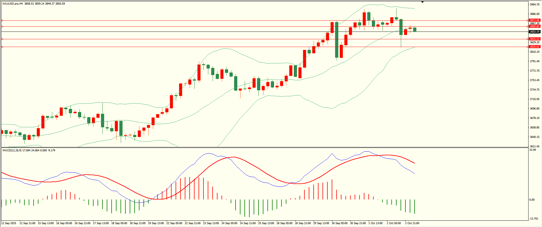 黄金昨日先扬后抑,盘中触及第二阻力上方冲高回落,日线报收上下影线中阴线,从收盘来看,上涨动能略有减弱,短线预防技术性调整,结合4H来看,布林中轨略有拐头,MACD零轴上方运行,日内上方首要阻力3859-60,第二阻力3870-71,下方支撑3835,3818-20,第一阻力在没有收复前短线有望回测第一支撑。