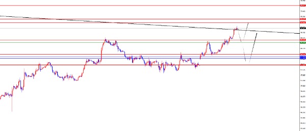 从多周期分析,周线级别来看近期价格在周线关键上下盘整,目前周线支撑于97.90区域,后续持续关注价格周线收盘在此位置上方,一旦收盘在此位置上方则后续将中线发力上涨。从日线级别看,随着时间的推移目前日线支撑于97.90区域,价格此位置之上波段进一步上涨。从四小时上看,在上周初价格承压于四小时阻力位置,在上周四价格突破上涨,之后周五再度回踩至日线及四小时支撑,整体目前四小时支撑于98.40-50位置,价格在此位置之上短线维持多。一小时上看目前价格测试到短线趋势线阻力区域,从空间上看价格均上涨150点后开始回撤修正,目前刚好空间到位,所以后续谨防调整,同时周一早盘价格挑空缺口还没有回补,所以暂时关注四小时支撑得失,一旦下破关注回补缺口后再发力上涨,不破四小时支撑之前暂时维持多对待。