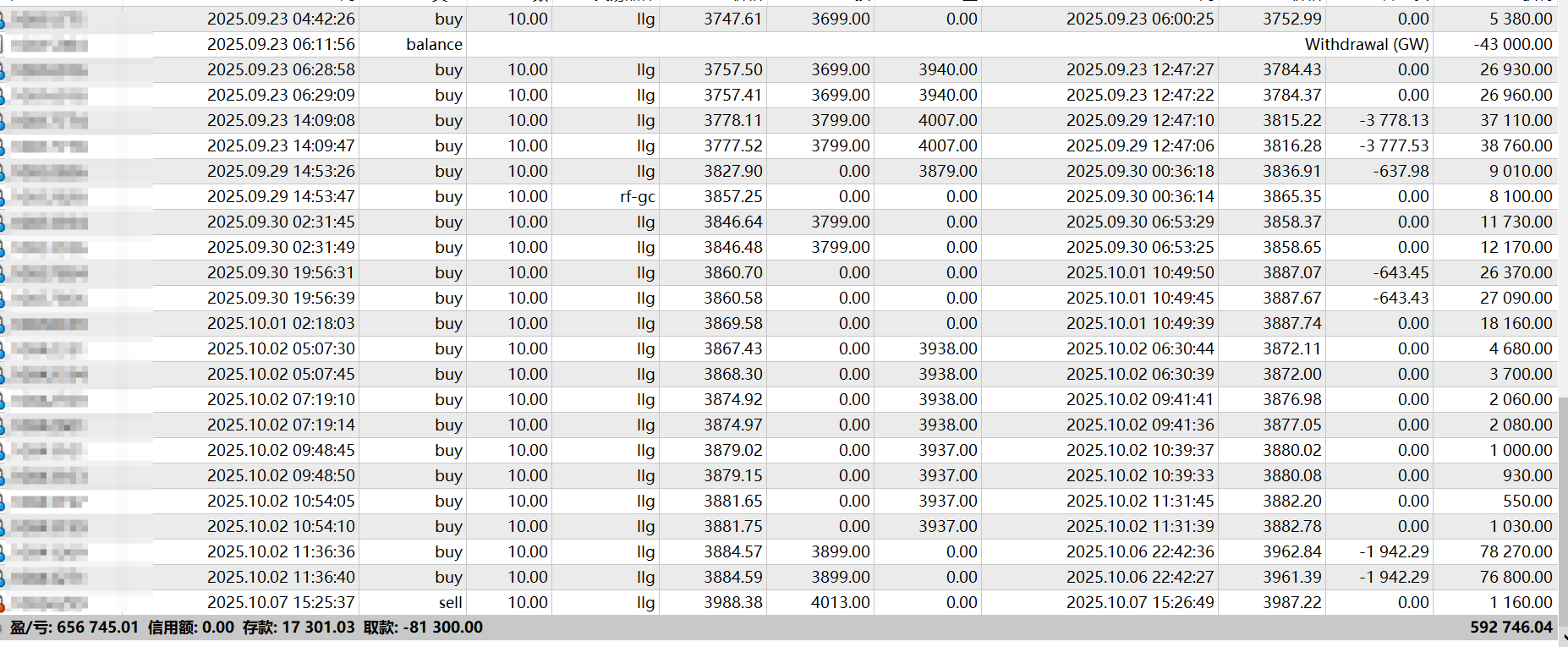 最近总是有很多朋友问什么时候能见顶,什么时候能开空,我的答案是不知道。现在很多朋友陷入一个操作上的怪圈,做多怕太高做空怕被秒,顺着趋势去做吧管它什么时候见顶呢,当行情在3600的时候谁能想到3900这么快就到?一个多月以前我们都已经讲过黄金上涨的底层逻辑,当去美元化过程不可逆,贸易规则变得模糊、货币锚出现动摇、全球债务负担持续堆积,黄金作价值定价逻辑便从商品向制度保障转化,那么黄金作为唯一不依赖第三方履约的资产,其估值将持续上涨。上次我们客户从2万美金做到接近25万美金出金之后,上个月也有客户从9月1日到目前1.7万做到75万左右,目前持仓4007附近的多单: