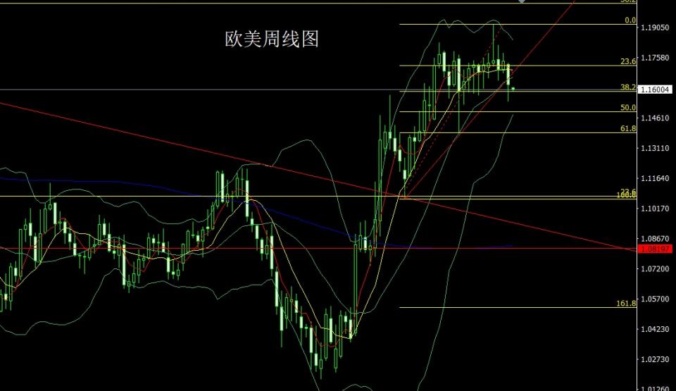 欧美市场上周开盘在1.17230的位置后行情先拉升给出1.17320的周线高点后行情强势回落,周线最低给到了1.15404的位置后周五受到中美贸易战预期影响欧元得利拉升,周线最终收线在了1.16245的位置后周线以一根下影线很长的大阴线收线,而这样的形态收尾后,本周1.15700多止损1.15500,目标看1.16100和1.16300和1.16500。