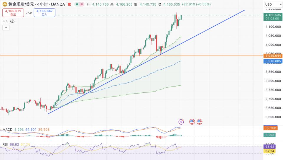 周二金价升破4150并再创纪录新高,中美贸易紧张局势升温、美国政府持续停摆以及市场对美联储月底降息的预期,都在支撑金价走高。