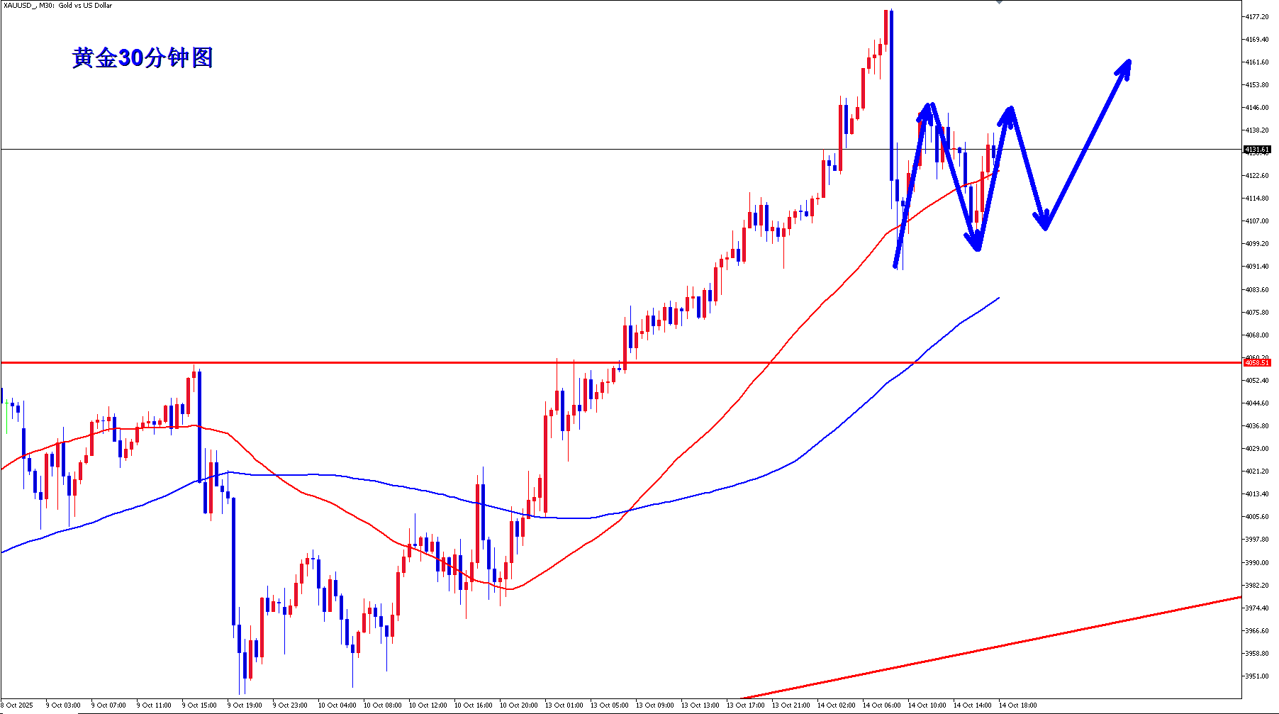 黄金现在只是牛市中的一个调整,黄金牛市格局不变,黄金现在还是继续顺势做多,鲍威尔讲话大概率还是会偏鸽派,黄金如果鲍威尔讲话后不破4090,那么就是继续给逢低做多的机会。