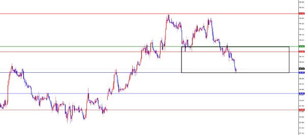 从多周期分析,周线价格经过前期持续震荡后于上周进行站稳,目前周线支撑于98区域,后续关注进一步中期多头(需要注意缺口位置)。从日线级别看,随着时间的推移目前日线支撑于98.40区域,此位置是波段走势的关键,价格目前已经触及,关注今日收盘表现。从四小时上看,在周二价格晚间进行跌破四小时支撑后,价格短线偏承压修正,这个也是我们在周二强调的重点,价格目前已经如期承压测试日线支撑区域,目前四小时阻力于98.80-90区域,后续价格只有站稳此位置才会继续发力上涨,否则短线还是偏空(谨防价格进行回补97.70缺口区域)。一小时上目前价格依旧处于偏空表现,但是需要注意日线支撑的反弹。所以综合所述,目前价格在98.80-90之下短线偏空,只有上破站稳才能看多头表现,大家一定要注意市场节奏)
