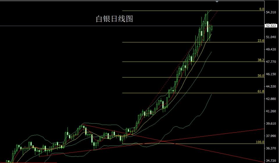 白银:下方37.8的多和38.8的多和44.6的多减仓后止损跟进在47持有,今日52多止损51.75,目标看52.6和53-53.5.