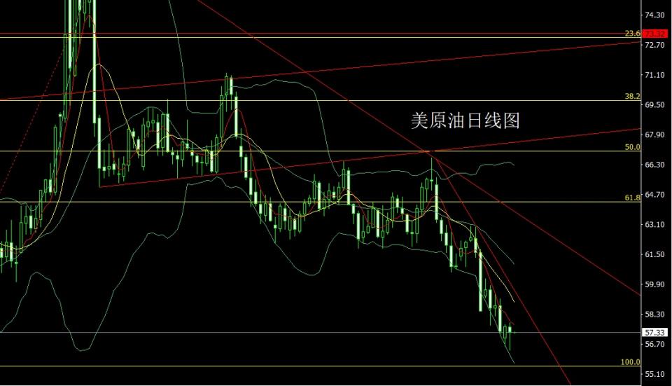 美原油市场昨日开盘在57.63的位置后行情小幅拉升给出57.85的位置后行情强势震荡回落,日线最低给到了56.35的位置后行情尾盘强势拉升,日线最终收线在了57.33的位置后,日线以一根下影线极长的锤头形态收线,而这样的形态收尾后,今日56.7多止损56.2,目标看57.3和57.85,破位看58和58.35-58.5.