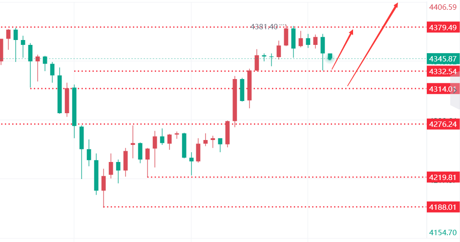 需注意的是,尽管当前呈现绝对强势特征,但历史数据显示,无论欧盘或美盘时段,每日均存在一定程度回落空间。故操作策略上,建议秉持"看涨不追高"原则,仅在合理价位布局有效多单。具体操作思路上文承凯建议,亚欧盘时段可考虑4335附近做多,美盘时段则等待4310附近二次进场,目标价位仍锚定4380-4448区间及4500整数关口。