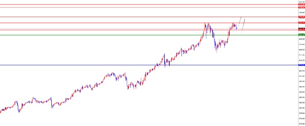 从多周期分析,首先观察月线节奏,从长线上看3150位置是长线走势的分水岭,价格在此位置之上长线多对待即可。从周线级别看,目前周线多空分水岭于3670位置,价格在此位置之上中线多对待即可。从日线级别看,暂时需要关注4105区域支撑,此位置之上波段多对待。从四小时上看,四小时上是我们一直强调的重点,昨日价格再度突破四小时阻力,则此位置变成短线支撑区域,位置上关注4300区域支撑,此位置之上短线依旧多头对待。同时一小时上看昨日强势收盘,今日早盘期间没有直接飙升,则暂时关注昨日凌晨回撤的低点位置3435区域支撑,此位置能否直接拉升决定是否属于极强上涨(欧盘需要再度破高),如若进行下破再关注四小时支撑看延续即可。