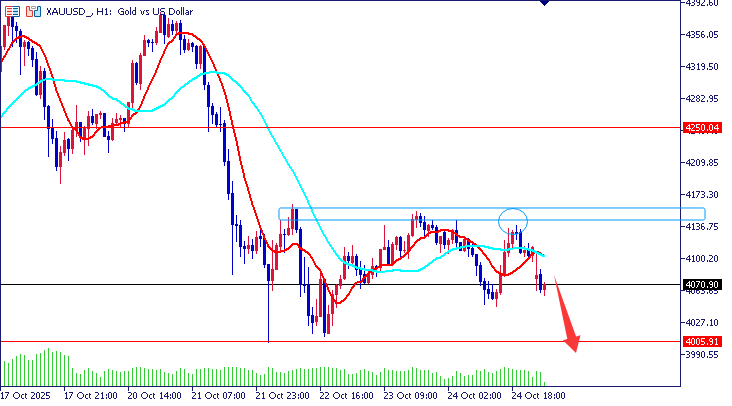 回到盘面黄金一小时,早盘跳空低开40美金,后迅速反弹再次承压下行,短期4150-4160区域是多头上行强阻力,金价短期内继续在一定区间内震荡,今日关注4000整数关口的支撑力度,上方关注4160、4200等关键阻力位。若跌破4000,可能开启较大级别的调整;早盘反弹4120下可继续空看延续!
