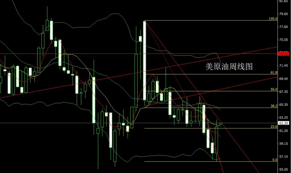 美原油市场上周开盘在57.62的位置后行情先回落,周线最低给到了56.34的位置后行情强势拉升,周线最高触及到了62.95的位置后行情整理,周线最终收线在了61.81的位置后,周线以一根上下影线等长的大阳线收线,而这样的形态收尾后,今日高开后先拉升给出62.8空止损63.2下方目标看62和61.5和61-60.5离场反手多。