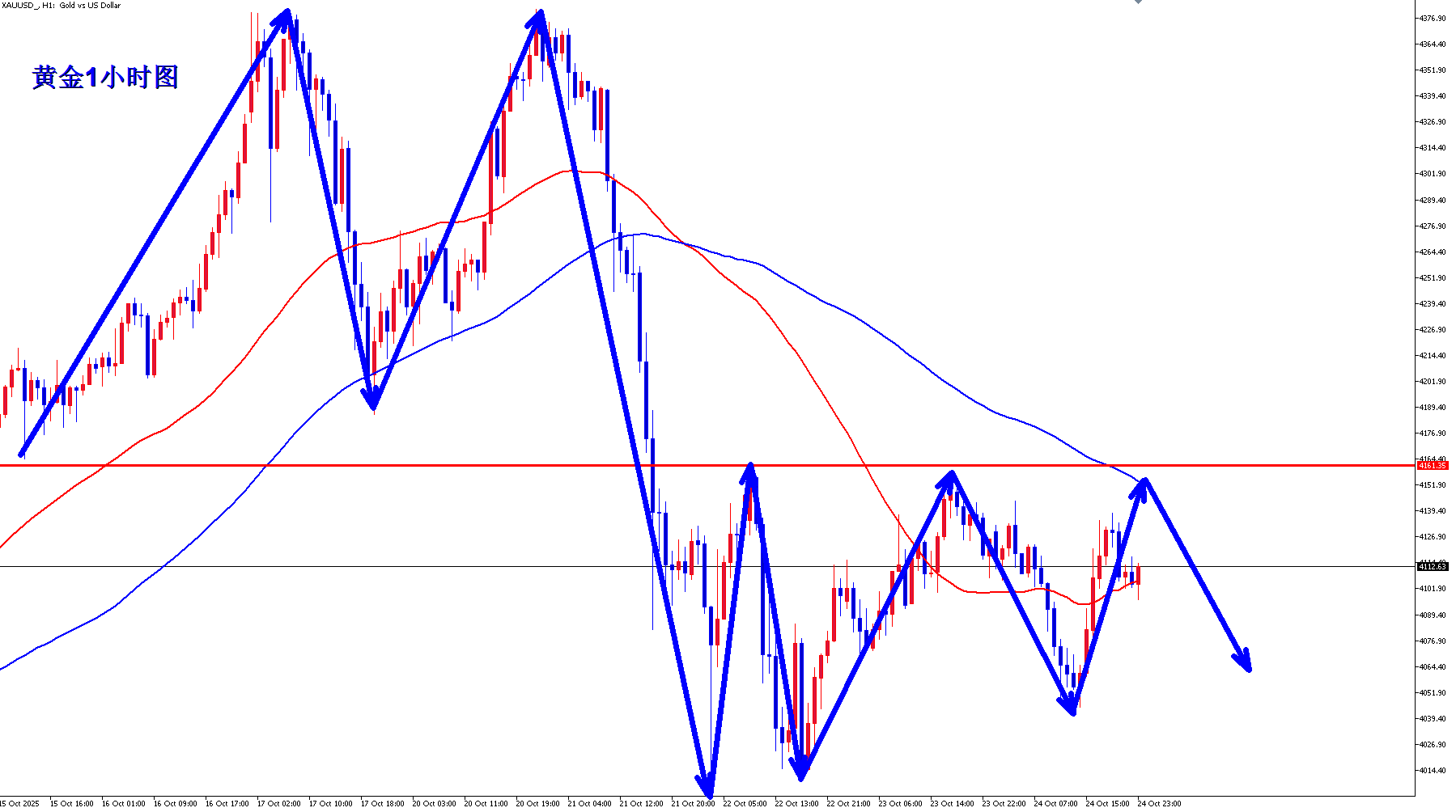 黄金1小时双顶之后,黄金还是在1小时双顶的颈线位压制之下来回震荡,黄金周五虽然CPI利多,不过并未让黄金多头突破4160,那么说明黄金多头短期依然承压,黄金还是继续大区间震荡,如果黄金下周初不能突破4160,那么还是可以继续先高空,下方还是继续关注4000一带区域的支撑。如果黄金下周末有避险消息刺激或者直接突破4160,那么黄金多头可能开始反击,到时候顺势继续多。