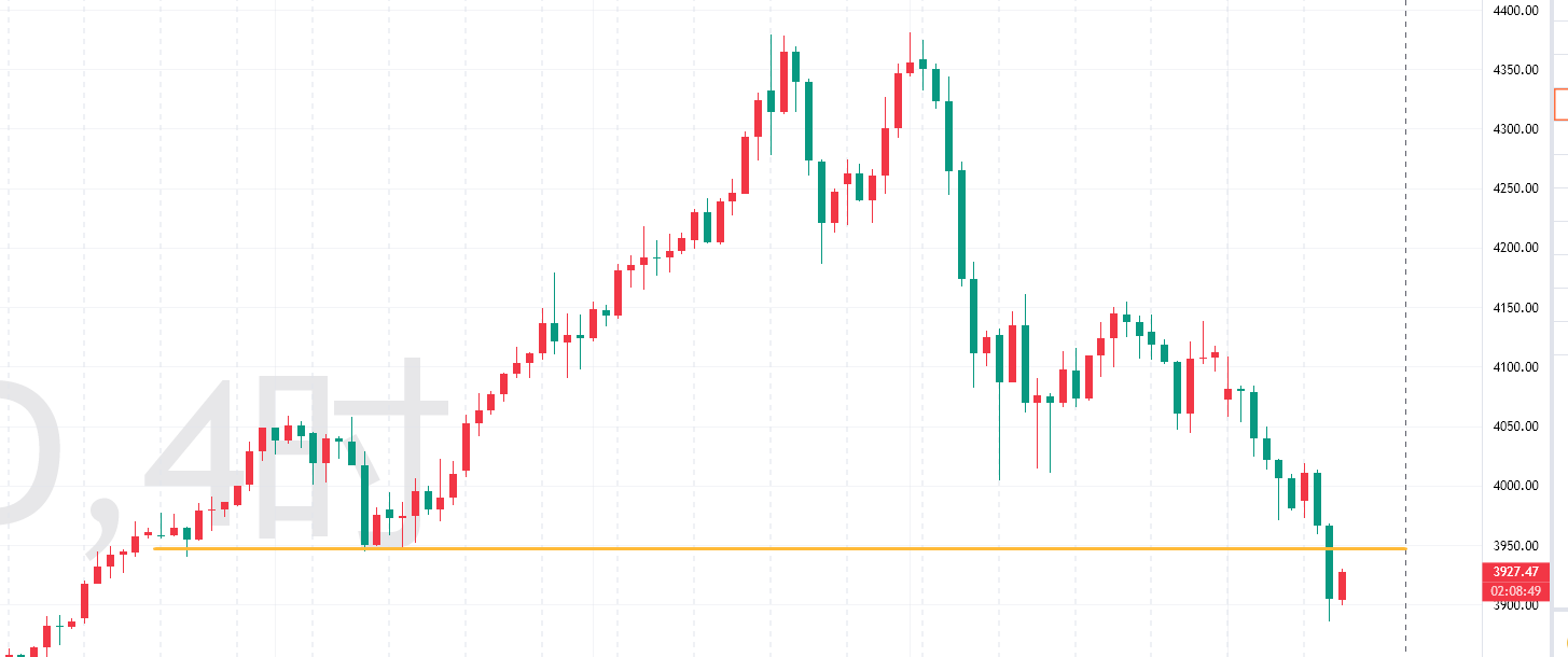 近期随着中美经贸磋商取得良好进展,导致前期由此引发的避险情绪有快速的消退,作为避险类产品,一旦风险消退,也就是退潮的时候,资金的分流加上高位多头的获利了结,从而造就了近期黄金的大幅回落行情,从高点4381一线到今天最低3886接近500美金的回落,也仅仅只用了5个交易日,比起上涨的时候也不遑多让,所以在现在的市场环境之下如何演绎都会有一些理由支撑,我们需要做的就是大胆执行,小心求证就好,就像昨天跟大家本身计划的抄底操作,最多有40点利润,没有离场就又回到原点了,要说后悔,那也没必要,每一次尝试过程都是对行情的新认知,目前4000大关没有守住,甚至日内3900也跌破了,短期就关注3940/50分水岭压力位,这个位置不破反弹先看延续回落,低多的话就要以盘中实时的临场发挥去参与了,另外重点关注周四凌晨美联储利率决议落地情况!