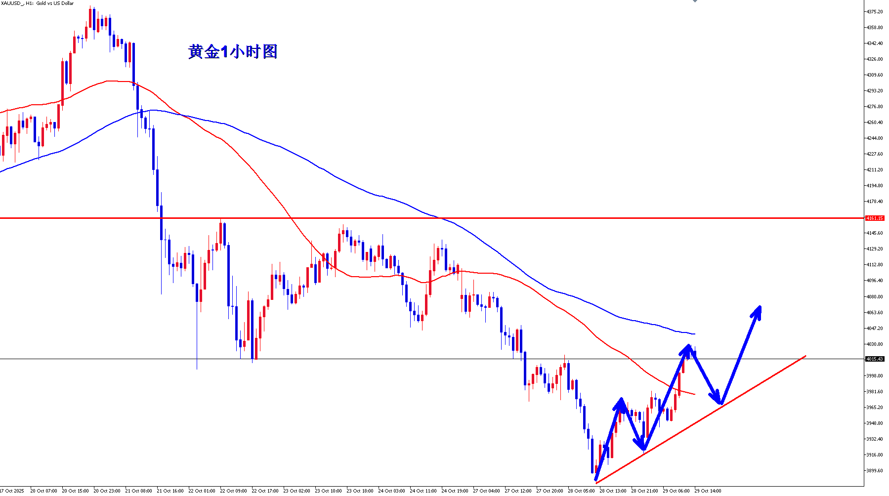 其实如果黄金现在今天强势上涨之后,那么其实已经消化了对美联储的降息预期,美联储利率决议大概率是要降息的,所以黄金等待美联储利率决议之后即使上涨也不要轻易追涨,耐心等待回落机会再考虑顺势多。黄金1小时现在整体还是震荡上涨,而且形成了上涨通道,那么黄金晚上回踩不破3965那么就是顺势多。