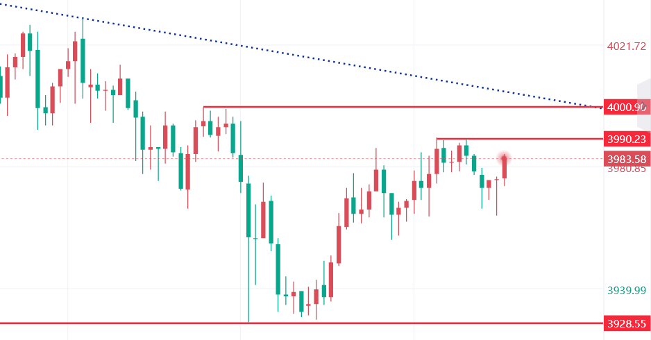 受此影响,美元指数应声反弹,黄金吸引力明显减弱。虽然周二金价一度下跌,但周三又凭借内驱力缓慢回升,最高触及3988附近。目前黄金市场仍处于弱势震荡格局,投资者都在屏息等待本周剩余数据的公布。