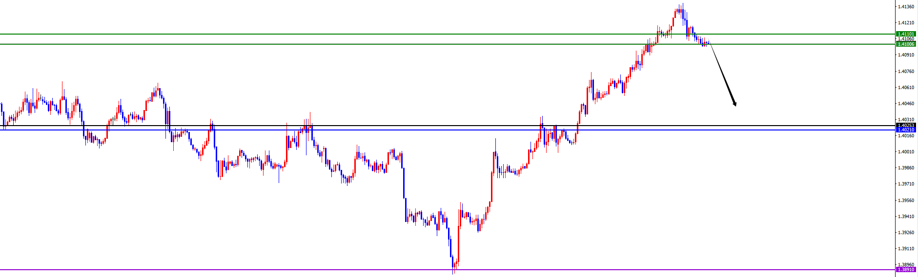 关键分水岭1.4100-1.4110区间,价格没有出现反转信号先看承压