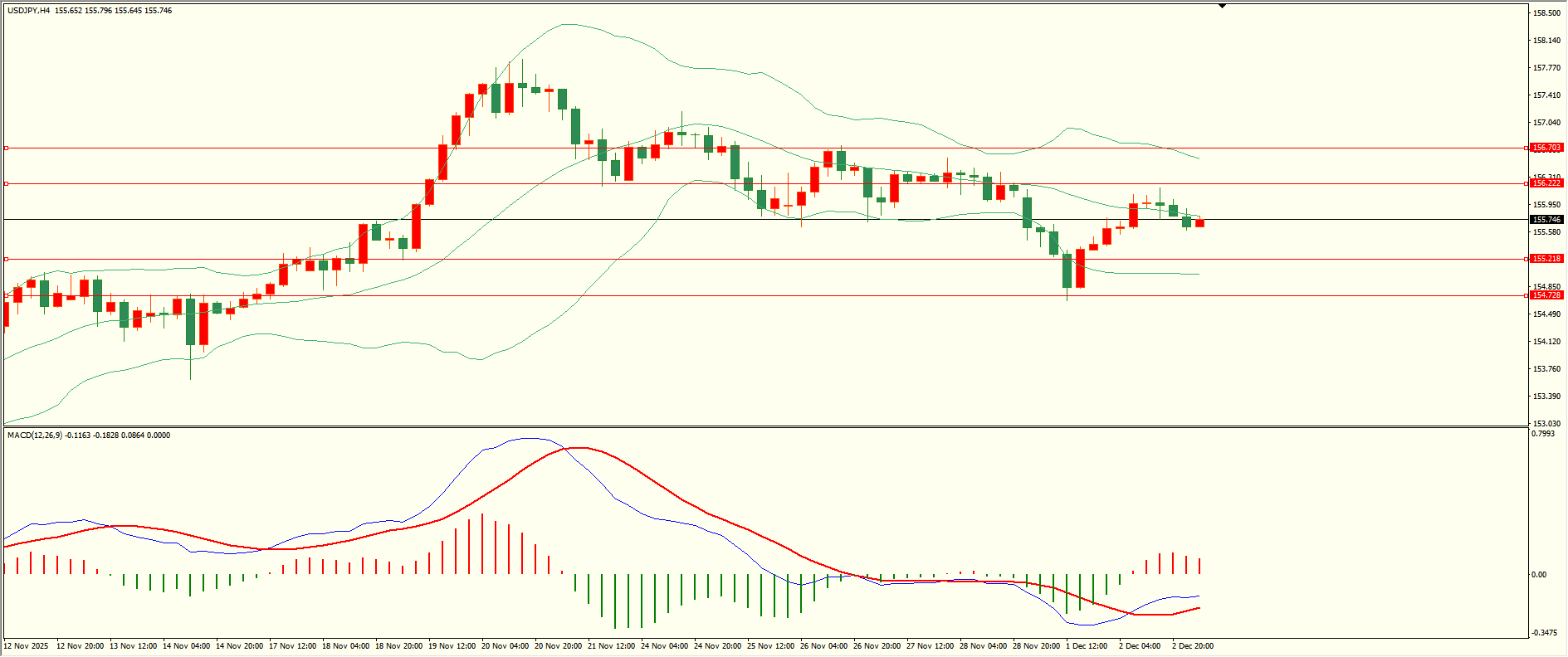 美日昨日反弹至第一阻力承压下行,至收盘下方空间受限,日线报收小阳线,支撑与阻力并存,短线预防震荡反复,从4H来看,布林中轨偏下,MACD零轴下方运行,日内上方首要阻力156.20,第二阻力156.70,下方支撑155.20,154.70,保持在第一阻力下方短线有望回测第一支撑。