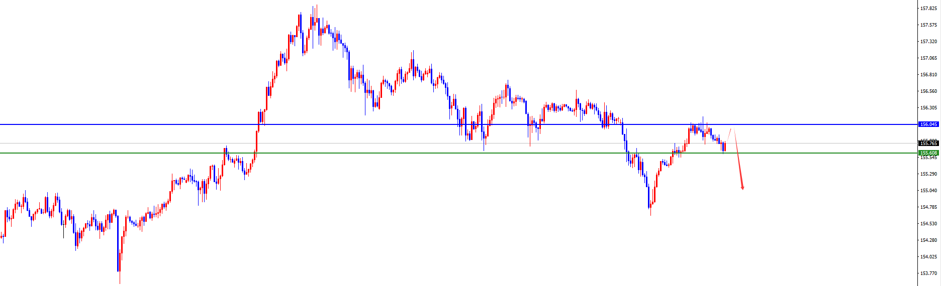 短线分水岭155.95-156.05区域,价格没有出现反转信号之前维持空