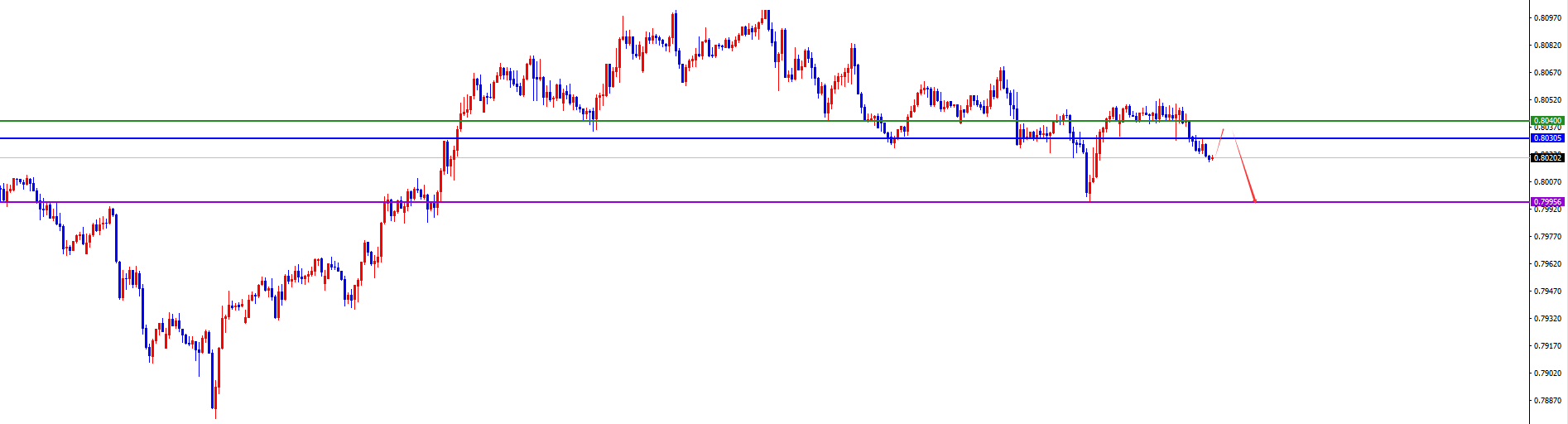 关键分水岭0.8030-40区域,价格没有出现反转之前先维持空