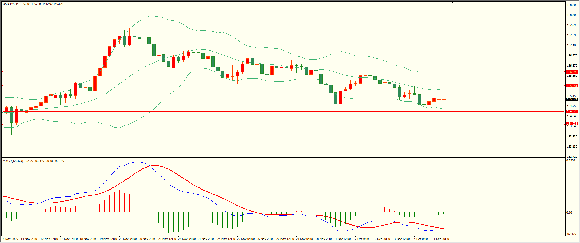 美日昨日反弹至第一阻力附近承压下行,盘中回落至第一支撑下方展开反弹,日线报收小阴线,收盘位置触及前支撑区,下破后方可继续,从4H来看,布林中轨偏下,MACD零轴下方运行,日内上方首要阻力155.55,第二阻力156.05,下方支撑154.50,154.05,保持在第一阻力下方短线有望回测第一支撑。