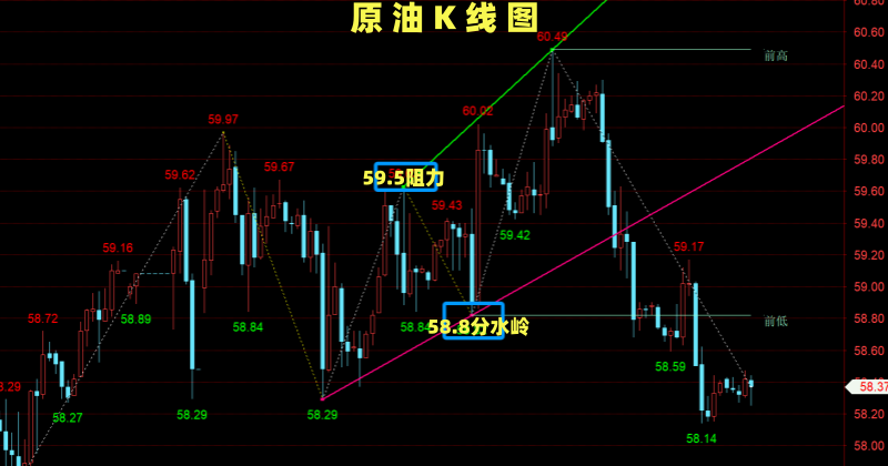 空单:激进58.8±2区间,稳健59.5±2区间,止损:各0.6左右,目标位:57.2附近!