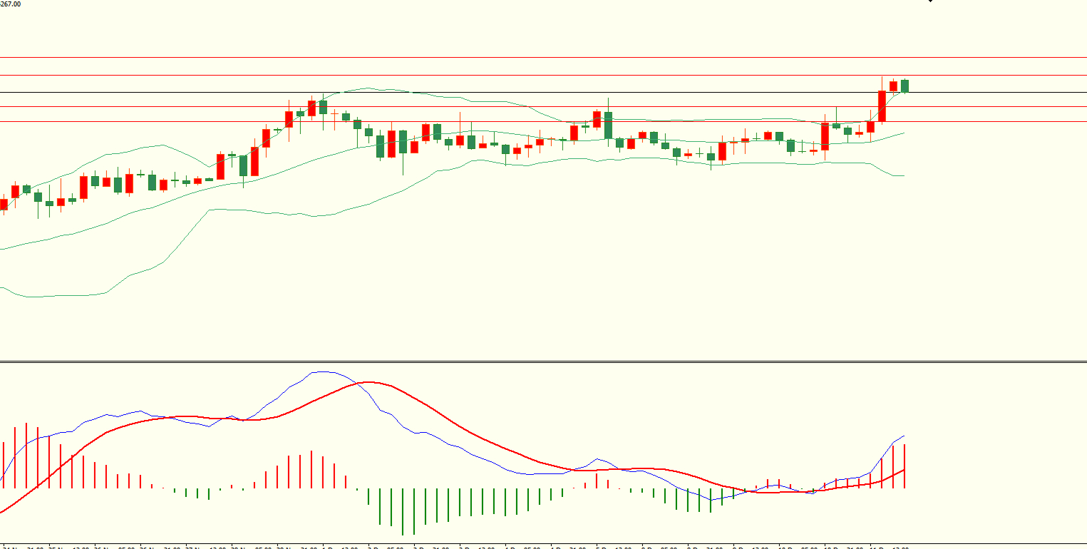 黄金昨日大幅攀升,一度突破4280关口并刷新7周高位,现汇价交投于4267附近。除美联储如期降息25个基点且决议不及预期鹰派影响发酵是支撑黄金攀升的主要原因外,时段内美国表现疲软的初请失业金数据也对黄金构成了一定的支撑。此外,地缘紧张局势激发的避险情绪也对黄金构成了一定的支撑。今日关注4320附近的压力情况,下方支撑在4230附近。