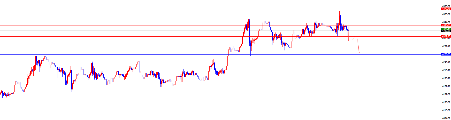 关键分水岭4325-35区域,没有出现反转信号之前先看空(价格跌破4308后将确认进一步承压)