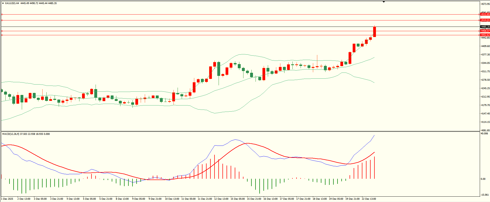 黄金昨日回调至第一支撑附近多头依旧,至收盘续创新高,日线报收大阳线,从收盘来看,多头动能强劲,短线谨慎臆测顶部,结合4H来看,布林上下轨略有扩张,MACD零轴上方运行,日内下方首要支撑4468-70,第二支撑4452,上方阻力4510-12,4532-35,第一支撑在没有失守前短线有望测试第一阻力。