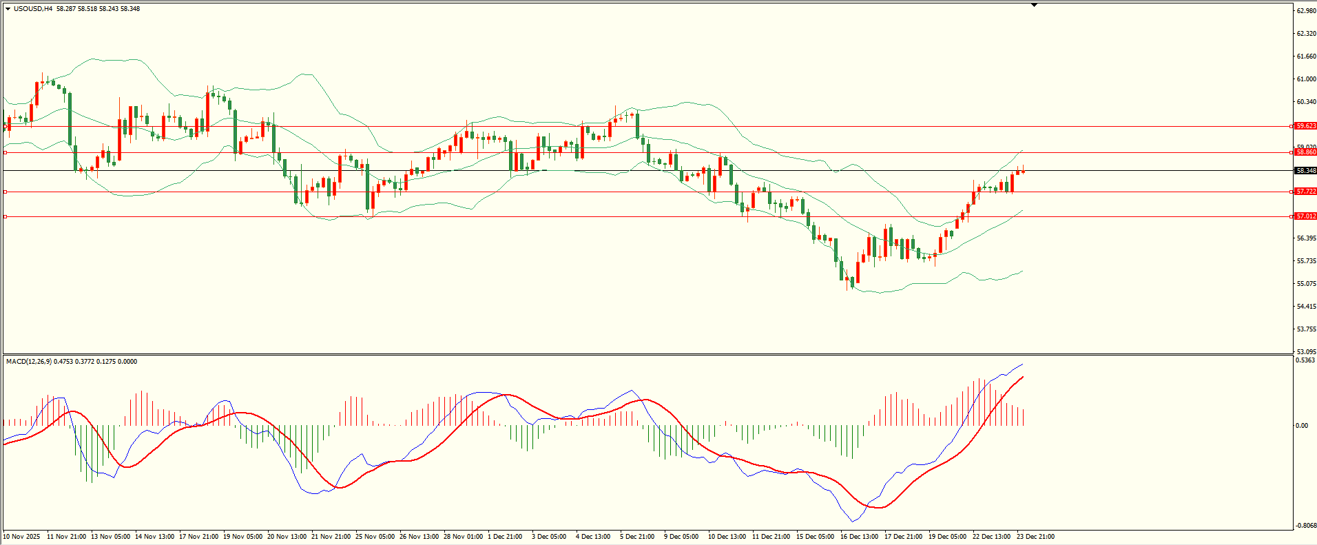 原油昨日回调至第一支撑上方延续反弹,至收盘触及第一阻力略有反复,日线报收小阳线,目前上方紧邻前高阻力区,谨防冲高回落,从4H来看,布林中轨偏上,MACD零轴上方运行,日内下方首要支撑57.75,第二支撑57.00,上方阻力58.85,59.60-70,保持在第一支撑上方短线有望测试第一阻力。