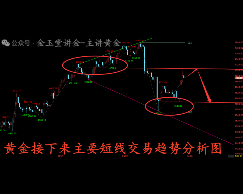 3、4500-4470作为空间切换点,下跌突破后探底回收回到这个区间,上涨突破冲高回落回到这个区间,下一次突破再继续进行下一步的空间切换