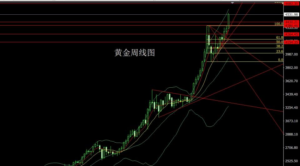 上周黄金市场周初开盘在4339.8的位置后行情先回落,周线最低给到了4337.2的位置后行情强势震荡拉升,周线最高触及到了4551.3的周线高点后行情整理,周线最终收线在了4531.8的位置后周线以一根下影线稍长于上影线的大阳线收线,而这这样的形态收尾后,本周市场有继续看多需求,点位上,下方3325和3322的多和3368-3370的多和3377和3385多和3563的多减仓后止损跟进在4000持有,前一周4176和4174的多和4187和4184的多以及4208和4205多止损跟进在4260持有,前一周4310的多减仓后止损放到4350,今日的行情4510多保守4507多止损4503,目标看4540和4552和4560和4572-4578压力。、