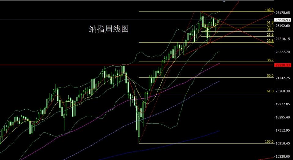 纳指市场上周开盘在25410.37的位置后行情先回落,周线最低给到了25370.25的位置后强势拉升,周线最高触及到了25712.84的位置后整理,周线最终收线在了25632.59的位置后,周线以一根中阳线收线,而这样的形态收尾后,今日25700空止损25760,目标看25600和25500.