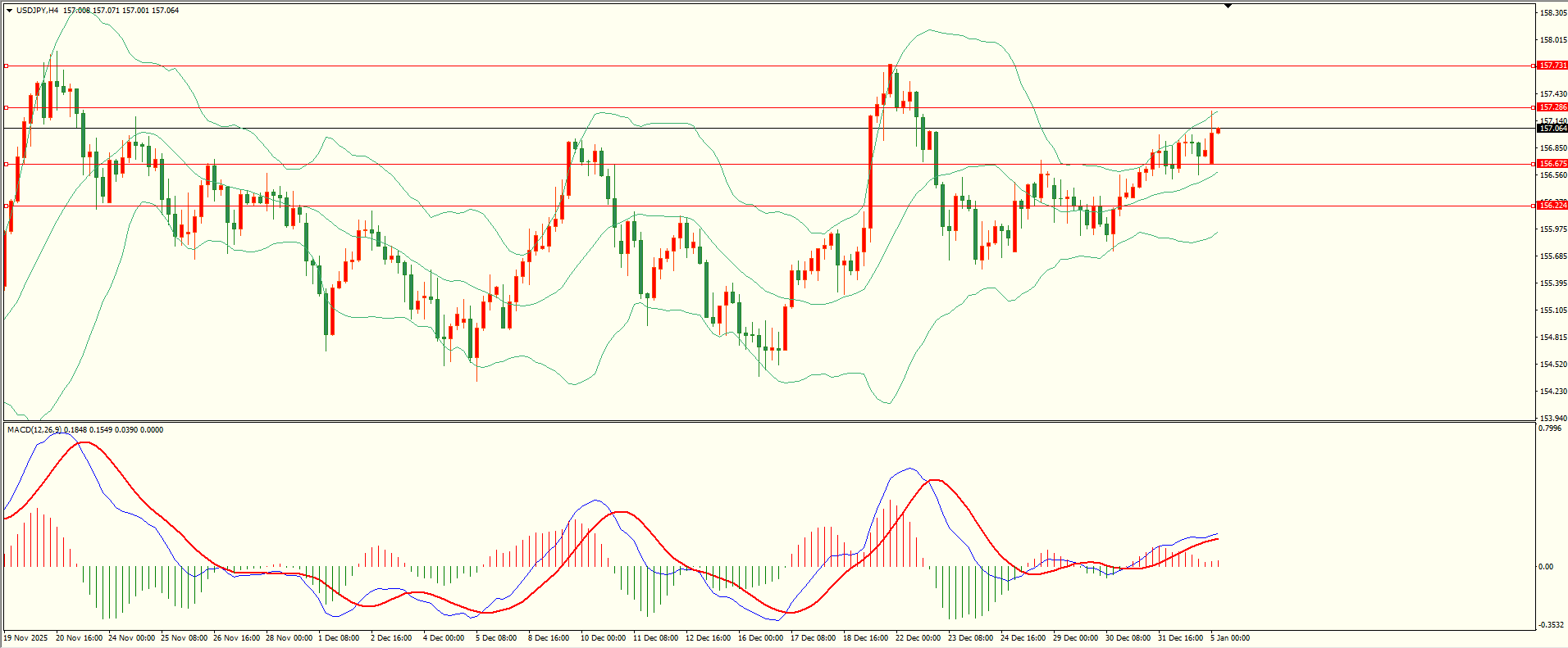 美日上周五基本维持震荡格局,日线报收小阳线,目前上方依然面临前高阻力区,突破后方可打开上升空间,从4H来看,布林中轨偏上,MACD零轴上方运行,日内下方首要支撑156.65,第二支撑156.25,上方阻力157.25,157.70,保持在第一支撑上方短线有望测试第一阻力。