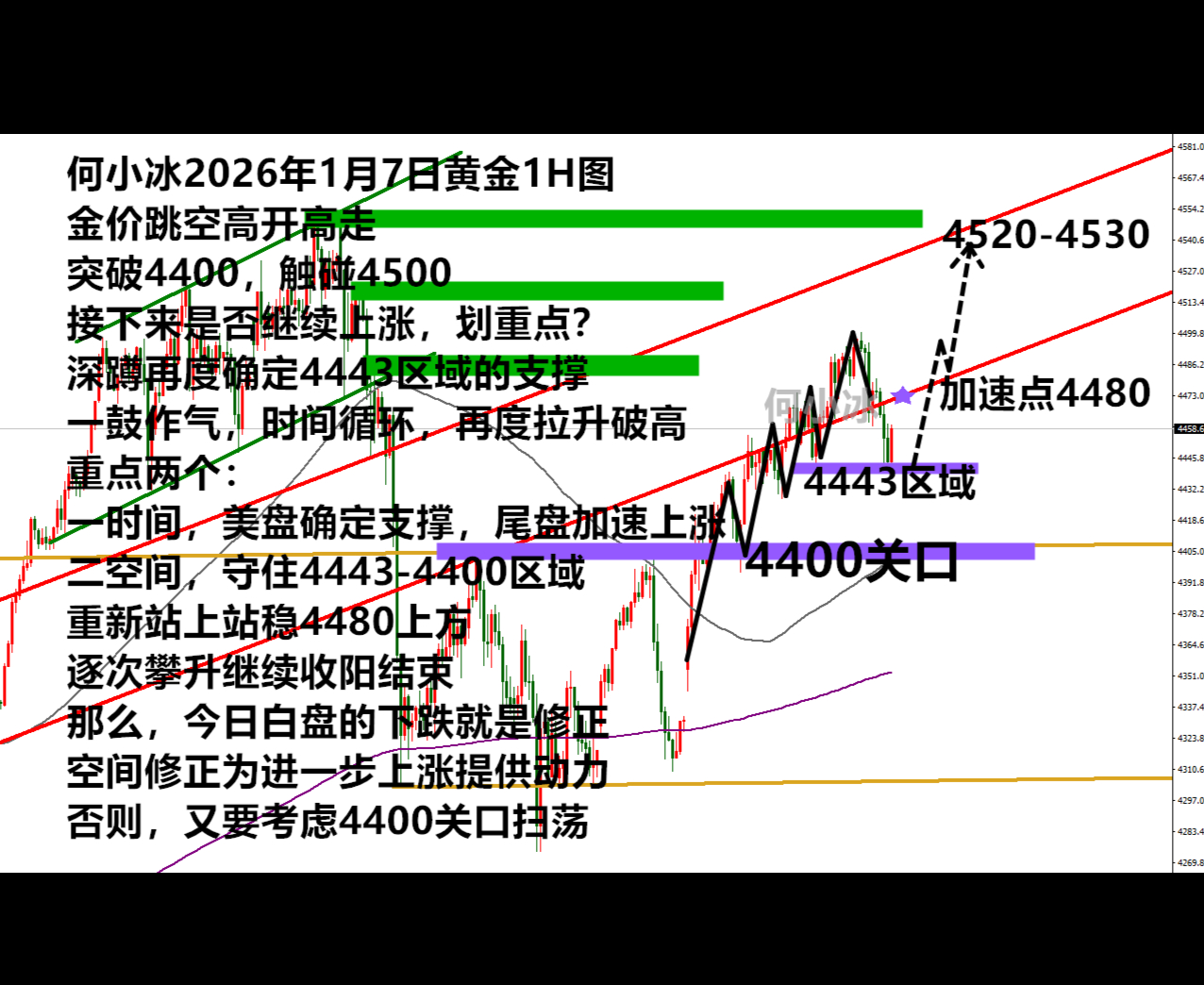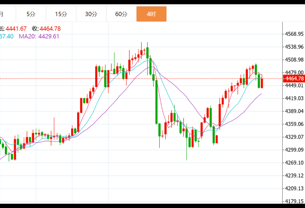 黄金:下方关注4410美元或4380美元附近支撑;上方关注4480美元或4500美元附近阻力;