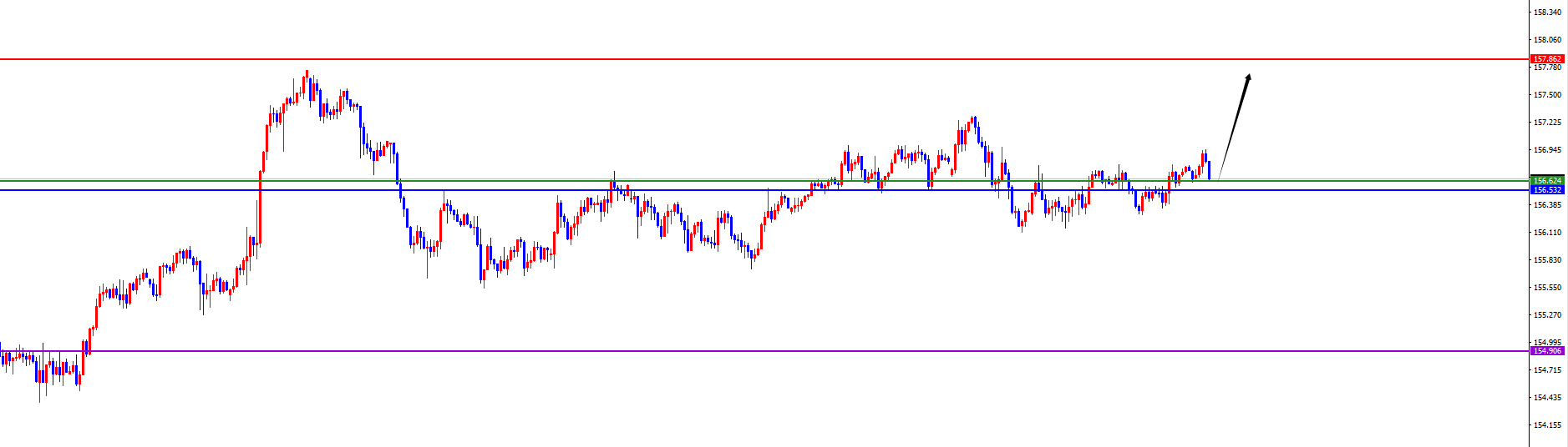 短线分水岭156.50-60区域,价格没有出现反转信号前看多