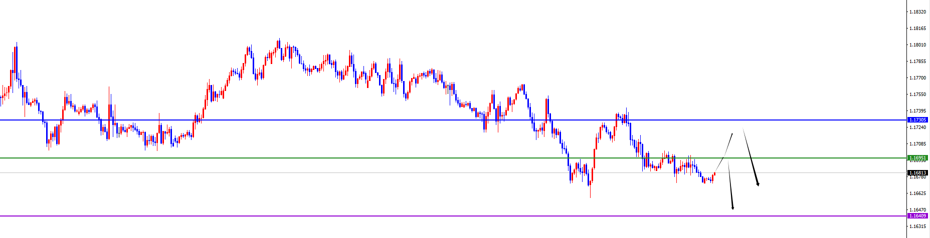 关键分水岭1.1690-1.1700区间,价格没有出现反转信号之前维持空