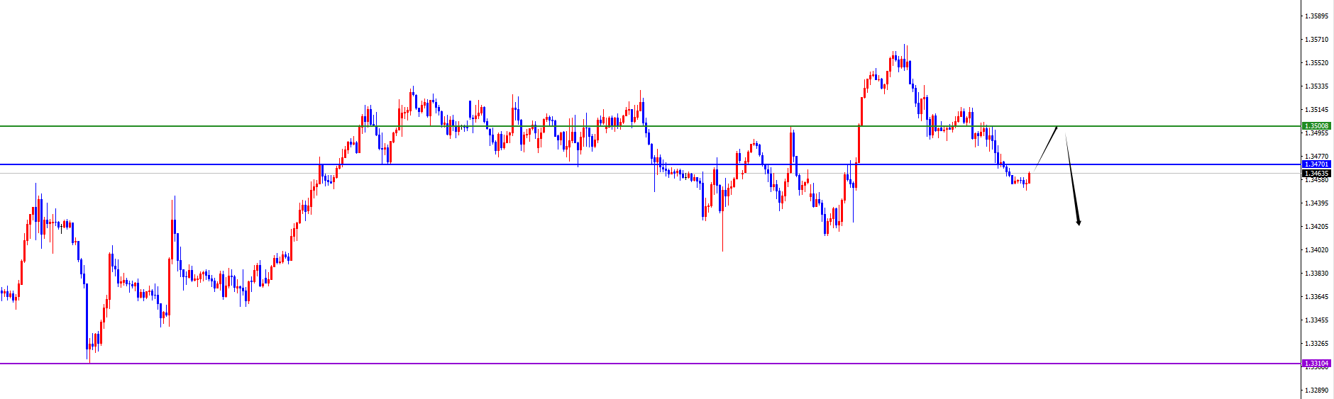 关键分水岭1.3490-1.3500区域,价格没有出现反转信号之前维持空