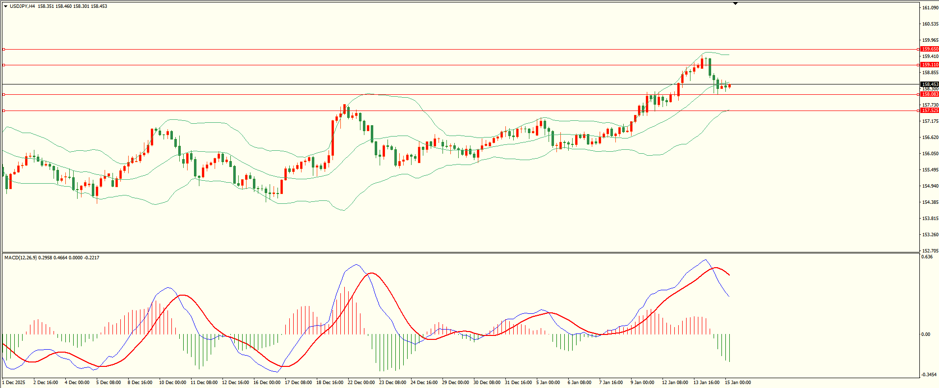 美日昨日先扬后抑,欧盘时段触及前阻力承压下行,日线报收中阴线,上方阻力保持,涨势略有缓和,从4H来看,布林中轨偏上吗,MACD零轴上方运行,日内下方首要支撑158.00,第二支撑157.50,上方阻力159.10,159.65,保持在第一支撑上方短线有望回测第一阻力。