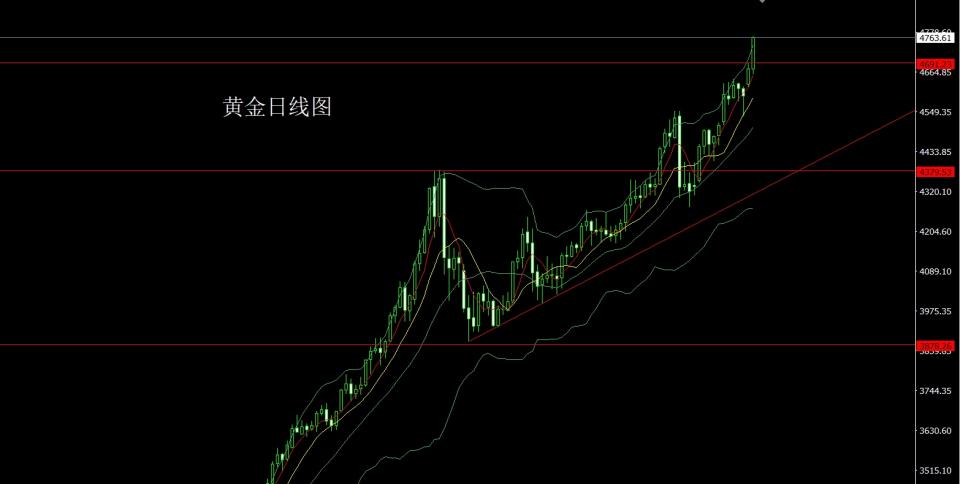 昨日黄金市场早盘开盘在4672.3的位置后行情先回落,日线最低给到了4659.2的位置后受到避险消息刺激行情强势拉升,日线最高触及到了4766.8的位置后整理,日线最终收线在了4763.6的位置后,日线以一根下影线稍长的大阳线收线,而这样的形态收尾后,今日的行情依旧有看多需求,但技术超买信号明显,需要多单需要做好获利了解的调整准备,点位上,下方3325和3322的多和3368-3370的多和3377和3385多和3563的多减仓后止损跟进在4200持有,4176和4174的多和4187和4184的多以及4208和4205多止损跟进在4210持有,前一周4455的多减仓后止损跟进在4460持有,今日4718多保守1415多止损4711,目标看4745和4752和4763和4772和4785和4796-4800