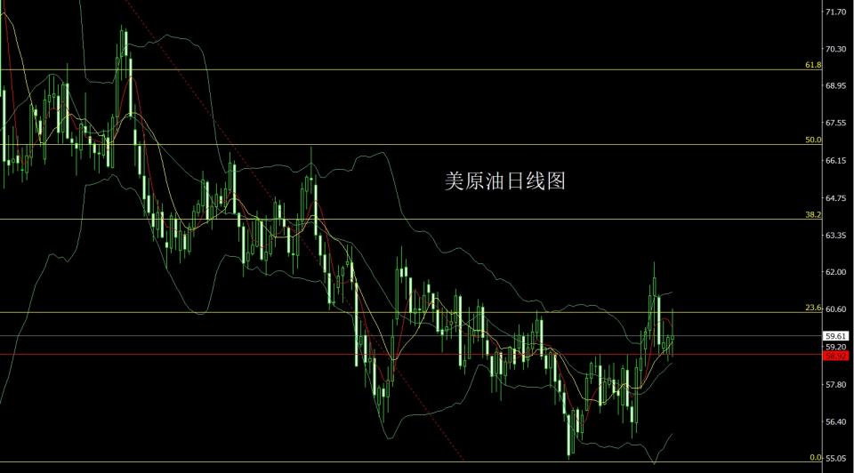 美原油市场昨日开盘在59.47的位置后行情先回落,日线最低给到了58.8的位置后行情强势拉升,日线最高触及到了60.62的位置后,尾盘回落,日线最终收线在了59.61的位置后,日线以一根上影线极长的射击之星形态收线,而这样的形态收尾后,今日60.2空止损60.7,目标看59.4和58.8-58.3.
