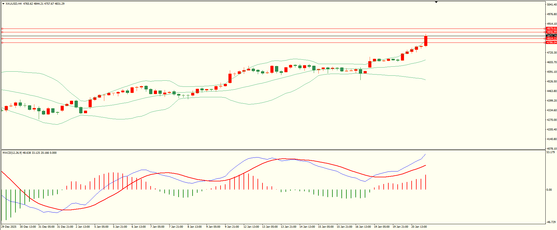 黄金昨日回调至第一支撑附近多头延续,至收盘续创新高,日线报收大阳线,从收盘来看,多头动能强劲,短线谨慎臆测顶部,结合4H来看,布林上下轨扩张,MACD零轴上方运行,日内下方首要支撑4812-14,第二支撑4785-86,上方阻力4856-58,4879-80,第一支撑在没有失守前短线有望测试第一阻力。