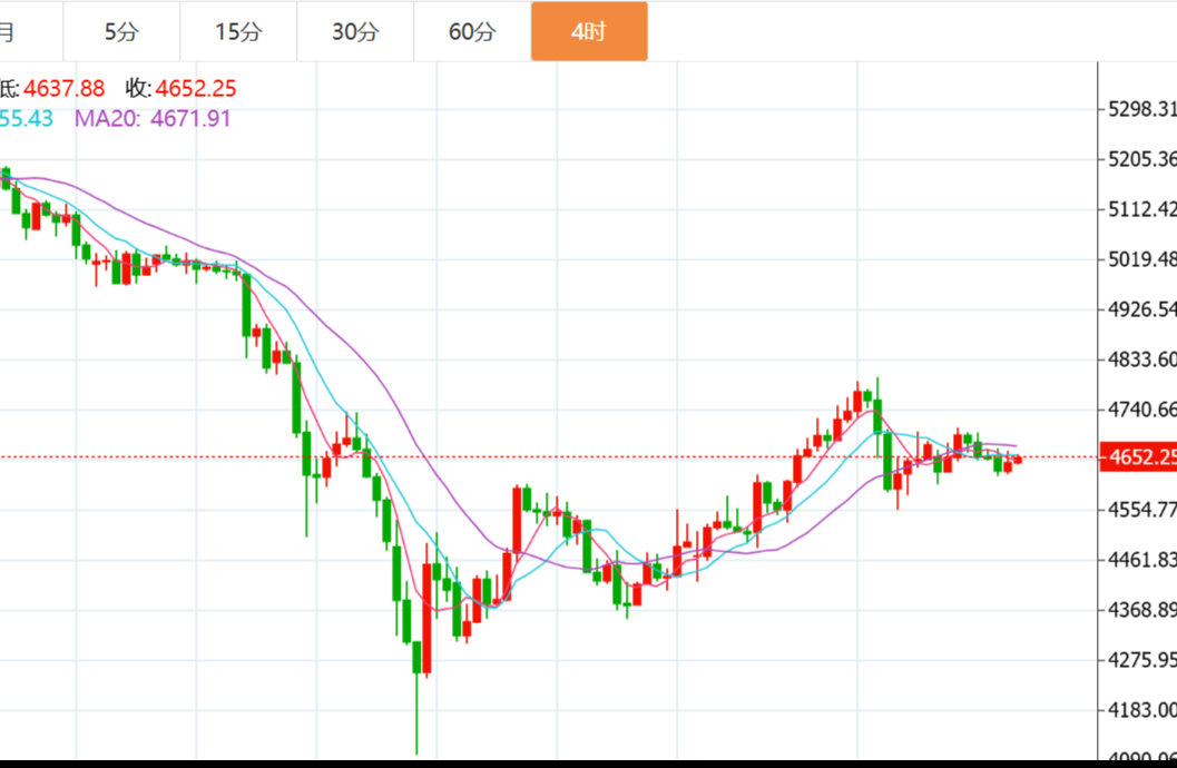 黄金小时线级别:一早开盘直接猛续涨冲击5600,每天都是先百米冲刺再说;欧盘压制5596下冲高回落,5470上暂时出现双底支撑,而5550一线属于中轴,顶底,也刚好逼近618分割阻力5547,因此5550之下是存在一定承压的,只有重新突破站上它,才能继续测试日内高点可能;当前支撑5471,也刚好是中轨支撑了,所以现在的小区间是5471-5550,看哪边有效破位;若向下破位,则会试探5360、5250,它若再失守,那么日线就有调整的信号了;反之,向上突破,则还会反复试探5600下,甚至不排除再强势走高,反正这几日始终处于疯狂情绪中。综合来看,黄金今日短线操作思路上贺博生建议以反弹做空为主,回踩低多为辅,上方短期重点关注5300-5350一线阻力,下方短期重点关注5150-5100一线支撑。