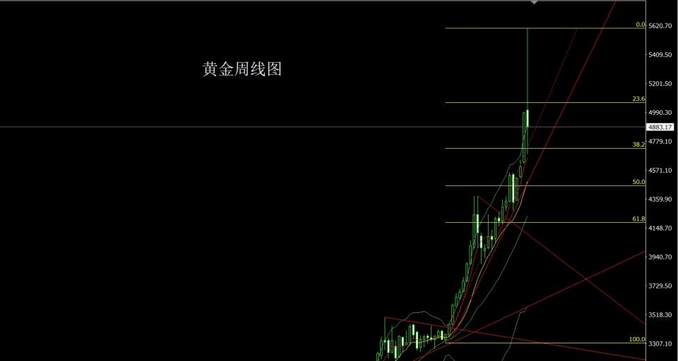 黄金市场上周在就基本面的影响剧烈震荡,其涨跌都是史诗级别的前所未见,周初行情小幅高开在5005.5的位置后行情小幅回补缺口给出4987.5的位置后行情在避险情绪的推动下强势拉升到周四早盘行情加速冲顶最高触及到了5600的历史新高后行情短期高位盘整后行情展开获利了结强势回落500个点,到周五行情在新任美联储主席提名公布后行情加速回落,周线最低给到了4683.3的位置后超跌反弹,周线最终收线在了4883.2的位置后,周线以一根上影线极长的的类倒锤头形态收线,而这样的形态收尾后,周线级别有继续调整需求,但这样的回落并不代表历史级别的见顶,毕竟基本面决定趋势,技术反应基本面,大的经济衰退预期和美债以及地缘局势问题并未解决的背景下,这波回落只看做事对之前超买形态的挤水分过程,前期底部多单周五全部跟进获利了结,本周市场新单操作,点位上,今日早盘正常会低开,回补5020尝试空,止损5230。目标看4950和4900和4850和4800破位看4750和4700和4680,跌破的话本周主要的调整目标在4600和4550-4530这个区间离场准备布局多单。