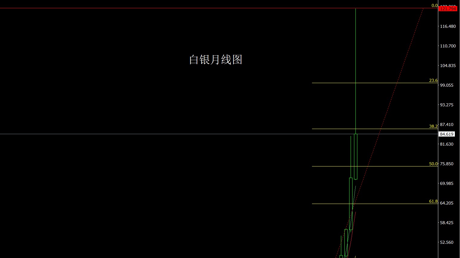 白银市场1月初行情开盘在71.182的位置后行情小幅回踩给出70.873的位置后行情强势拉升,到上周四月线给出历史新高121.794的历史新高目标后市场出现获利了结强势回落,到周五最低给到了73.284的位置后尾盘拉升,月线最终收线在了84.619的位置后,月线以一根上影线极长的类倒锤头形态收线,而这样的形态收尾后,2月的行情有回落需求,点位上,本周95空止损95.5,目标看86和80,跌破看78.7和76和75.跌破看73和70离场反手多。