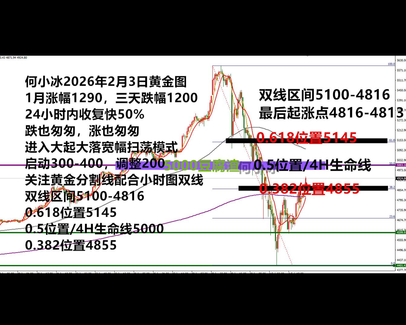 关键分水岭4855区域,短线关注4400-4910区间破位后跟随