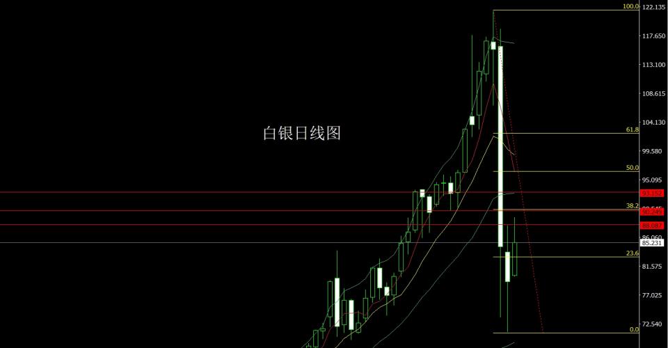 白银市场昨日高开在80.075的位置后行情小幅回踩79.844的位置后行情强势震荡拉升,日线最高触及到了89.185的位置后行情冲高回落,日线最终收线在了85.231的位置后,日线以一根上影线很长的大阳线收线,而这样的形态收尾后,今日先回落81.4多止损80.9,目标看83.2和84和85压力。
