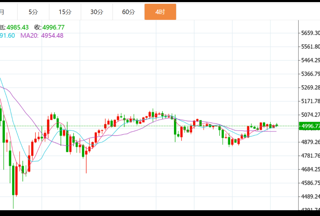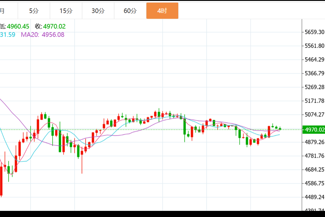 具体走势上,金价自亚市开于4977.09美/盎司,先行录得日内低点4959.36美元,之后日内连续过山车震荡走盘为主,于美盘时段微幅刷新欧盘初高点触及5022.08美元,最终维持在震荡区间内,遇阻回撤收于4996.35美元,日振幅62.72美元,收涨19.26美元,涨幅0.39%。