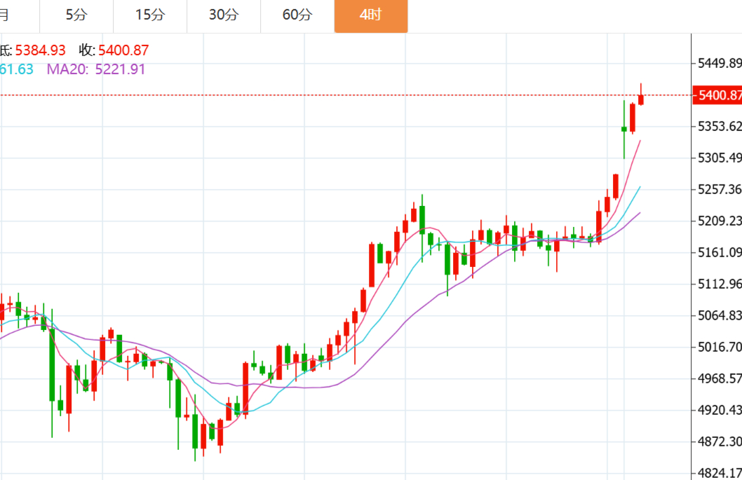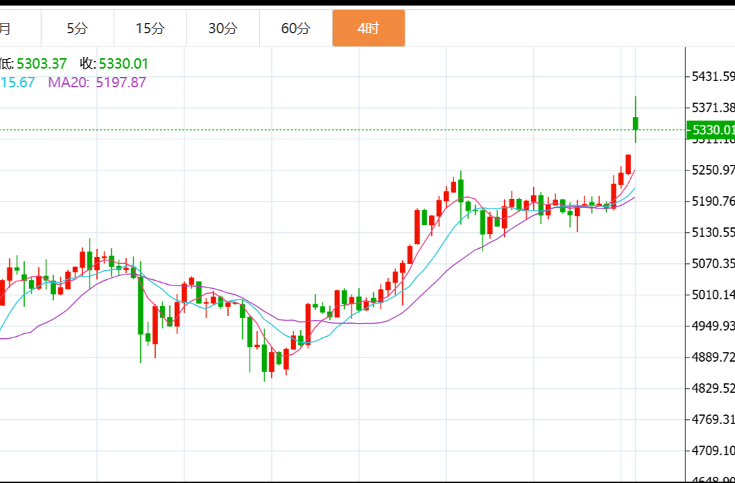 具体走势上,金价自周初开于5106.96美元/盎司后走强,虽周二收复涨幅先行录得当周低点5094.07美元,但之后止跌连续反弹,并在周五多头动力加大,进一步上行,录得当周高点5278.28美元,最终持稳收于5277.15美元,周振幅184.21美元,收涨170.19美元,涨幅3.33%。