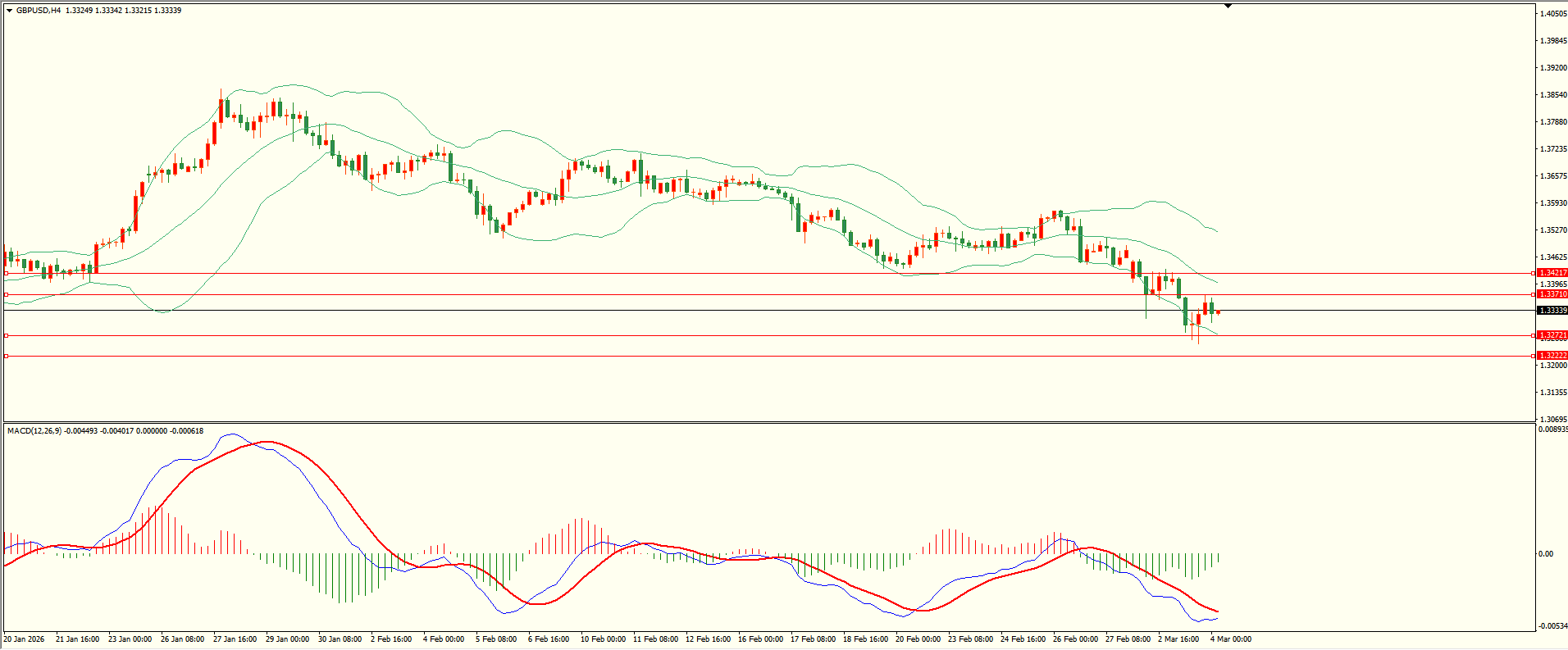 英镑昨日小幅调整后承压下行,欧盘时段回落至第二支撑下方略有缓和,日线报收中阴线,短线空头略有占优,从4H来看,布林中轨偏下,MACD零轴下方运行,日内上方首要阻力1,3370,第二阻力1.3420,下方支撑1.3270,1.3220,第一阻力在没有收复前短线有望回测第一支撑。