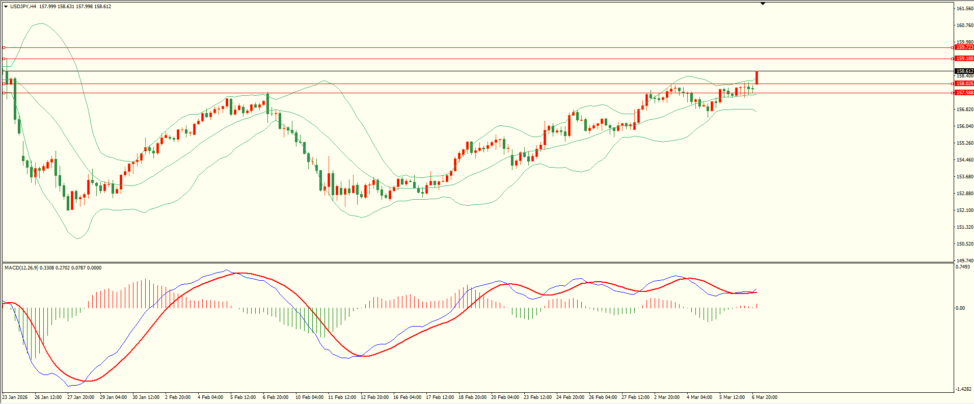美日上周五亚市开盘后延续走高,盘中触及第一阻力承压下行,日线报收小阳线,上方阻力犹存,突破后方可打开上升空间,从4H来看,布林中轨略有走平,MACD零轴上方运行,日内下方首要支撑158.00,第二支撑157.55,上方阻力159.15,159.70,保持在第一支撑上方短线有望测试第一阻力。